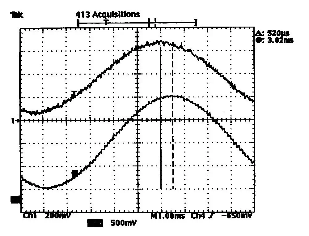 The previous firm had done poor lowpass filtering of the ADC input as well, so it fell to us to do some digital lowpass filtering — which introduces a phase delay of its own. So when we got the system right side up, we had two things to analyze and measure: Latency introduced by the time required to complete the ADC conversion itself plus phase shift of a moving average FIR digital lowpass filter.