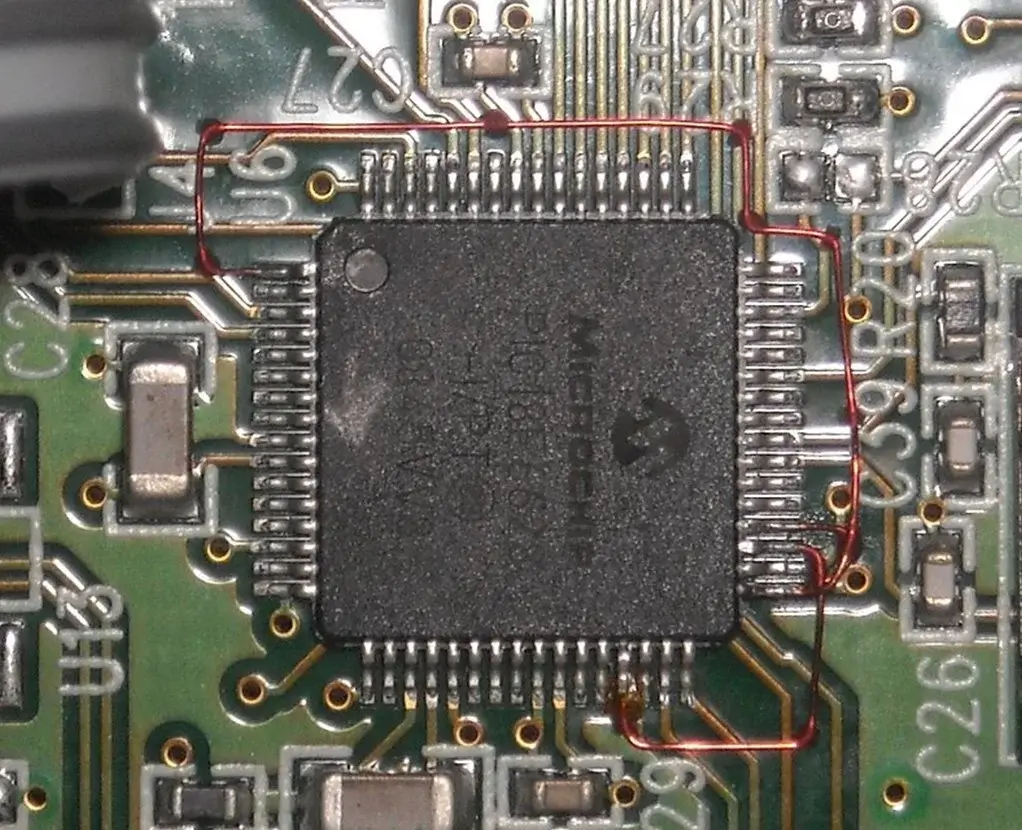 We recognized — mostly from our experiences designing Picoprojectors — that the human eye and brain are enormously forgiving and that you can still run scanned, multiplexed display elements at low (and non-deterministic) speeds and satisfy a user’s visual cortex. So we flipped the code structure and attached the start signal of the ADC to a hardware timer internal to the processor chip. Suddenly, we were getting spectrally pure data and could generate real results. We only had to figure out the least intrusive way to lift a pin and add a wire to the processor to get at that hardware signal we needed. In the first round, the number of units shipped would be small, and nobody could justify redoing the entire PCB layout.